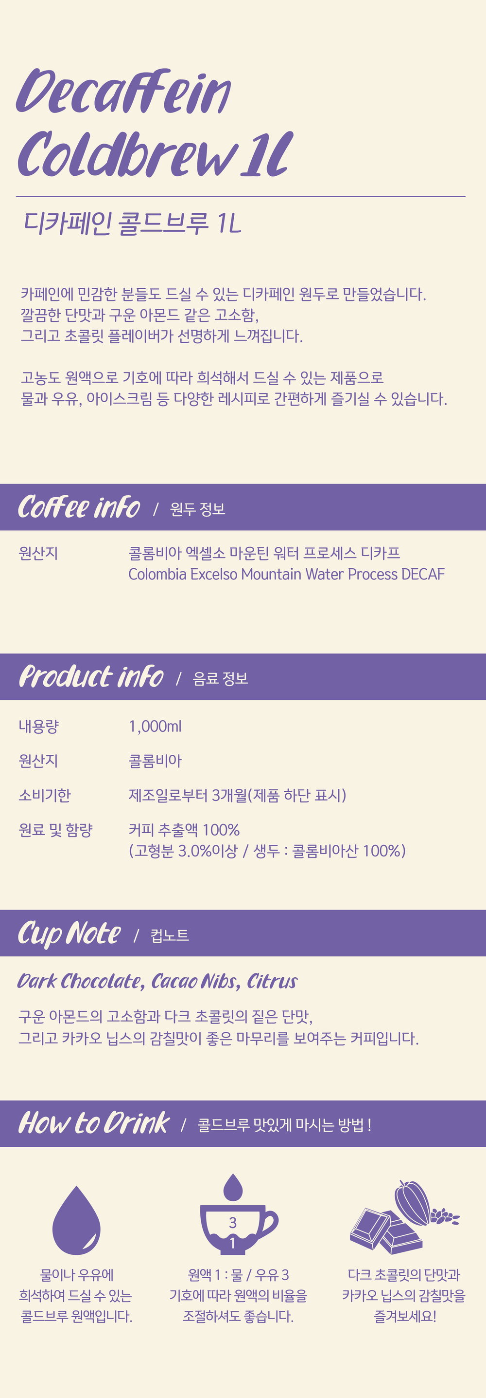 카페인에 민감한 분들도 드실 수 있는 디카페인 원두로 만들었습니다.