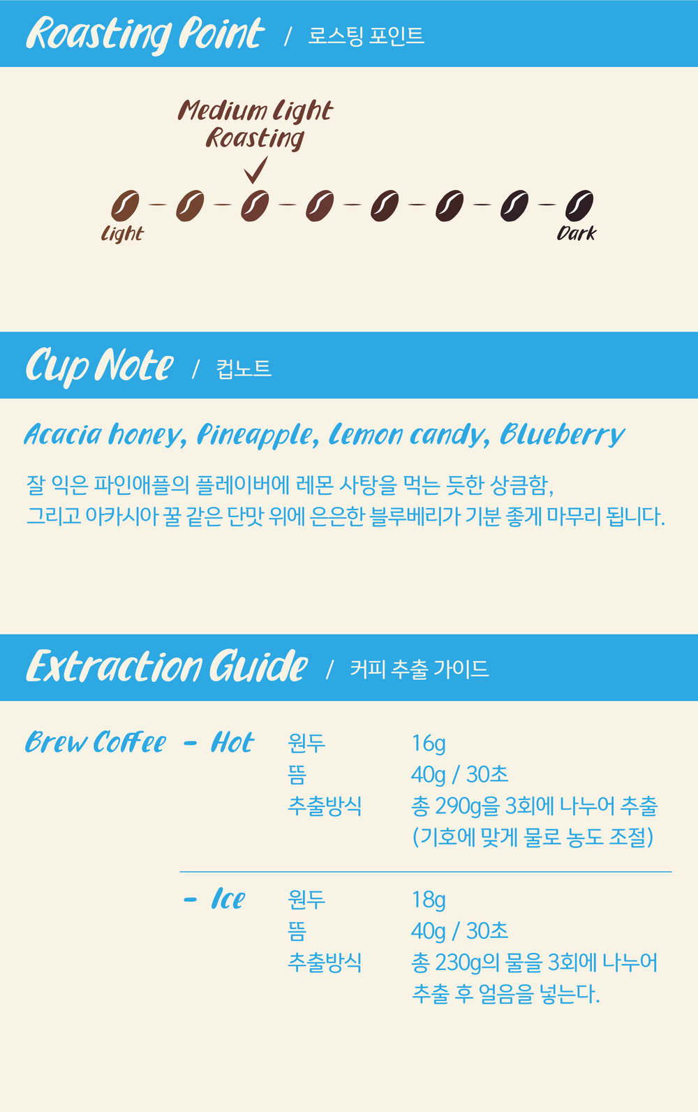 그리고 아카시아 꿀 같은 단맛 위에 은은한 블루베리가 기분 좋게 마무리 됩니다.